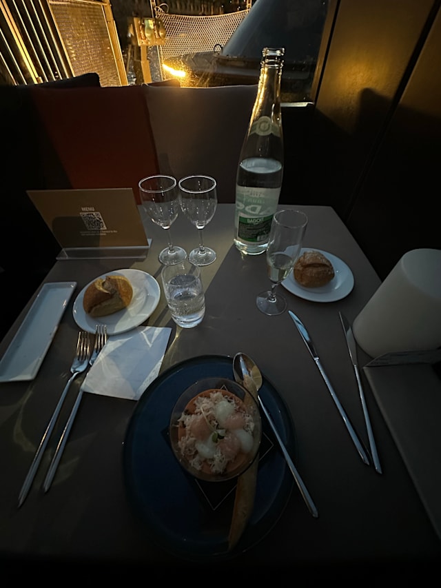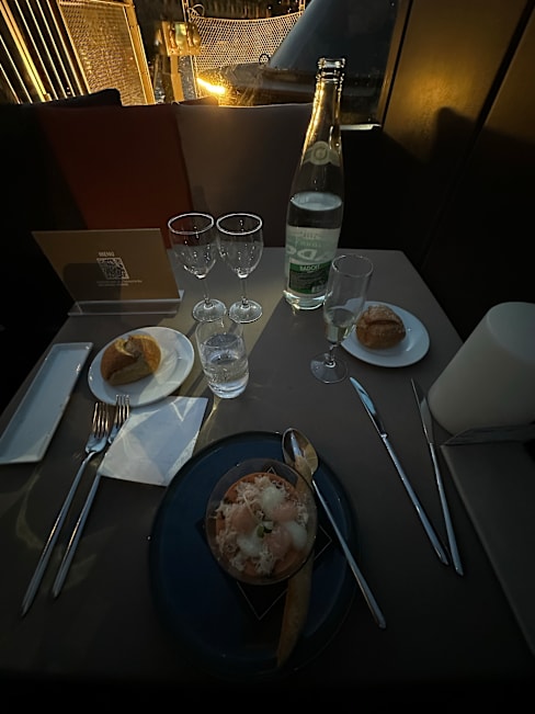 9/10in my opinion, they could have provided the same three glasses to choose from. Otherwise, only one glass of champagne, one white and one red wine are included. the food is delicious, the music is pleasant, if you could book a specific table - ideal. I prefer a daytime walk; at 20:30-23:00 it’s still very dark to explore the views of Paris.