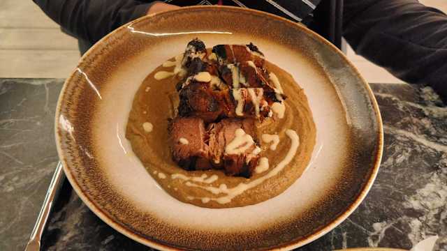 - Pancia di manzo cbt con babaganush di melanzane e salsa tahina e lime