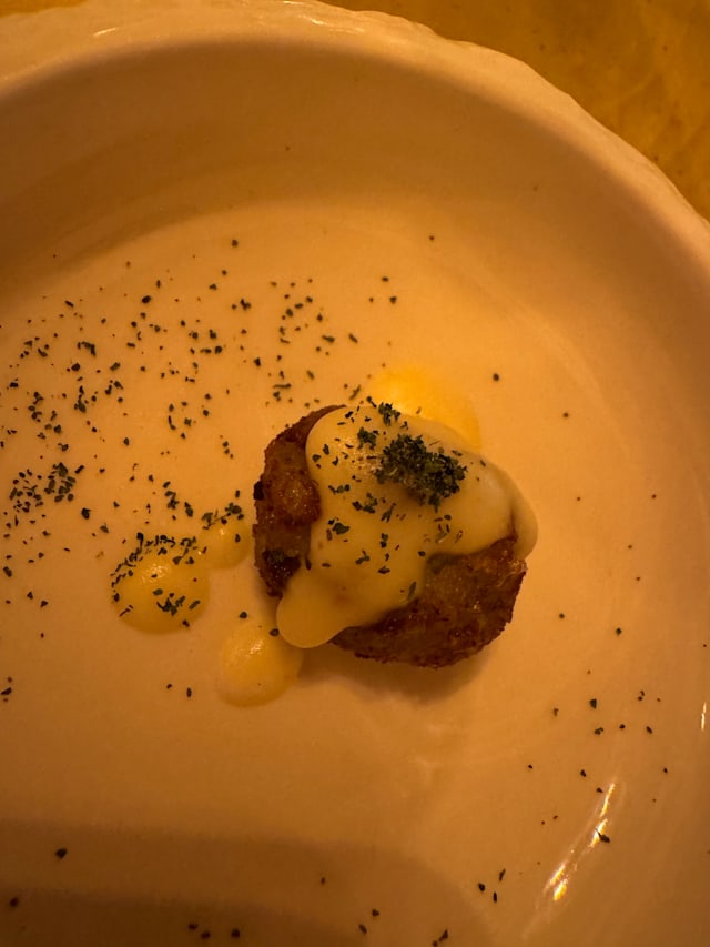 9/10The waiting staff were very friendly and attentive and made some good recommendations for food and wine pairings. The amuse-bouche at the start of the meal was an unexpected surprise and very tasty. It has a lovely peaceful courtyard at the front, just 2 minutes from the bustling via Emanuelle.