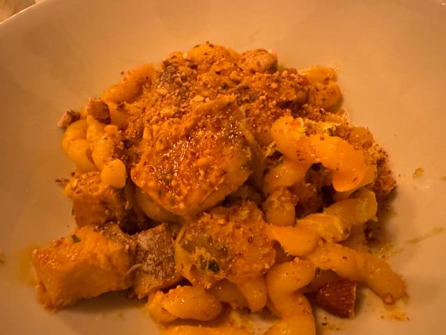 7/10We found the restaurant to be quaint and cozy. Service was good and food was good. Lasagna with pumpkin was very interesting. Owner was very kind. It was pouring rain he walked us to our taxi.