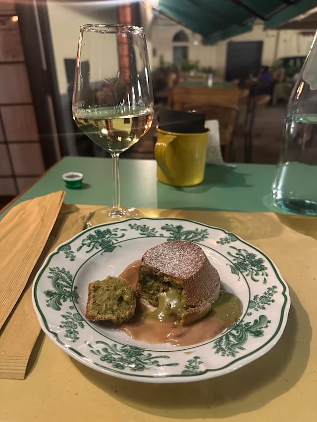 Tortino al pistacchio con crema di nocciola