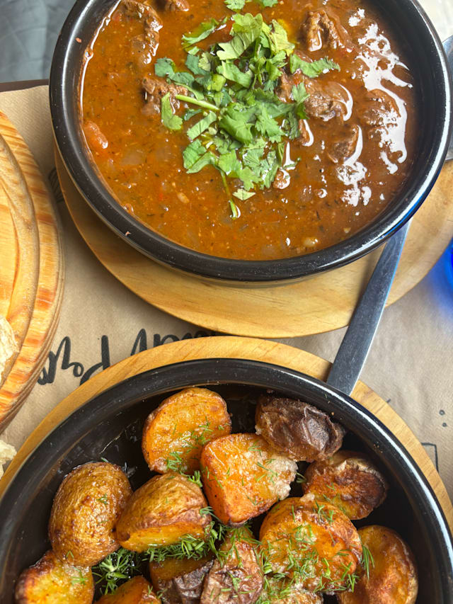 10/10First opportunity to sample Georgian cuisine. Did not disappoint. Pork and lamb dishes brimming with tasty, lean meat. Mushroom and cheese starter delicious. Had a bottle of Georgian red wine - Mukuzani. Excellent and very well priced. Helpful friendly service. Couldn't fault the experience. Great evening.