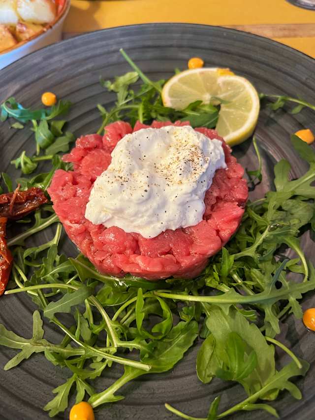 - Tartare di chianina con burrata