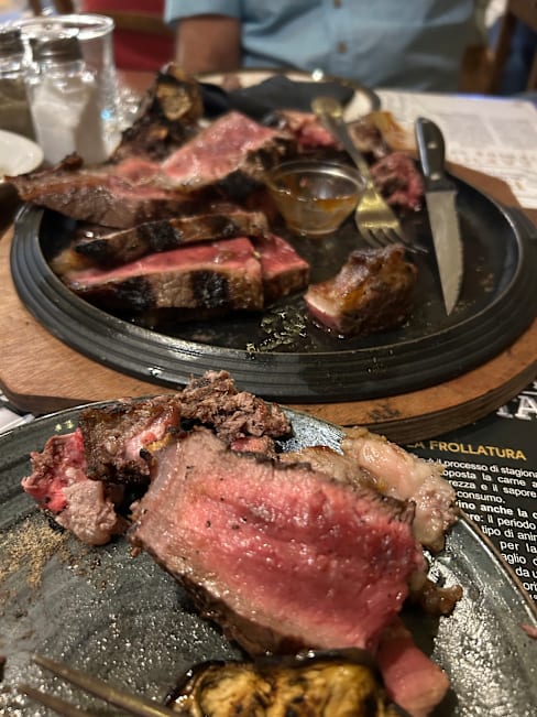 8/10I enjoyed my experience. I ordered too much per usual but it was worth getting all 1.1 kg of the Bistecca. They politely vacuum sealed the reminders and made no judgements. although their wine list was limited it was a good selection. It seems rather family friendly which meant not only loud children but the football game was on. I didn’t dislike it but it got loud at times. The staff was lovely. They appreciated my attempt at Italian but also spoke English (and I imagine a handful of other languages). I looked around and their other foods looked just as good as the steak so I am intrigued to go back for something different. All in all, worth the steep trek home after dinner to have tried the restaurant.