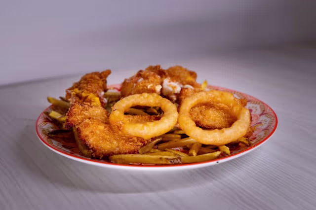 - Patatine, straccetti di pollo, onion rings, mozzarella e cheddar sticks