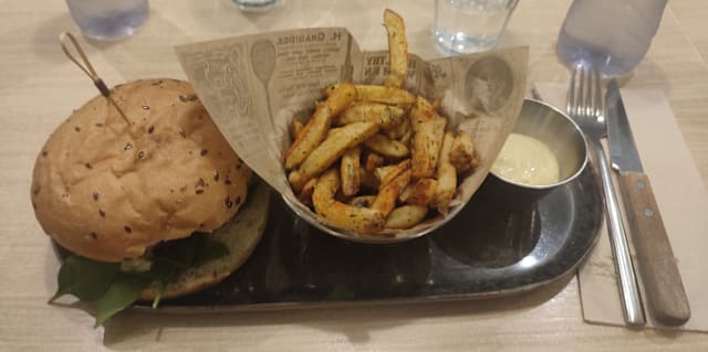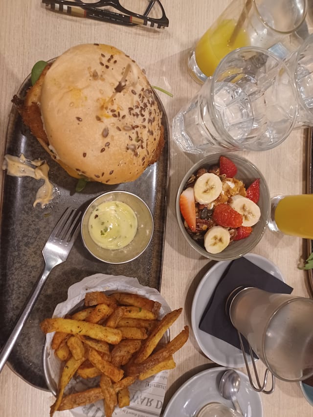 5.5/10The burger buns were dry, the patty small and without taste and the whole experience was mediocre. I was disappointed. The milkshake was good though, but not special in any way. Ambiance and decor really cool and the staff were nice and professional.