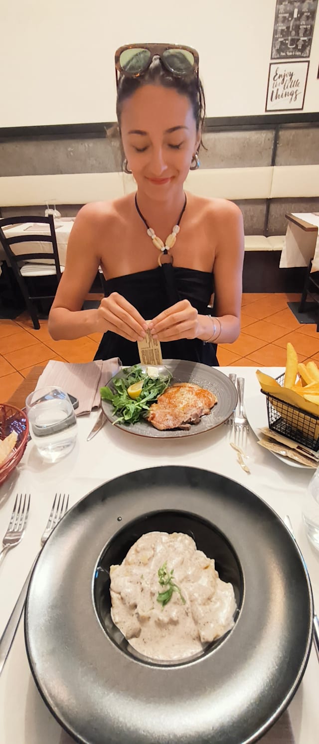 8.5/10The fish was amazing and tasty (even though I am not a fan of fish), bit the meat was a bit too difficult to chew. Cicoria ripassata was great and the deserts were beautiful. A very nice plaxe.
