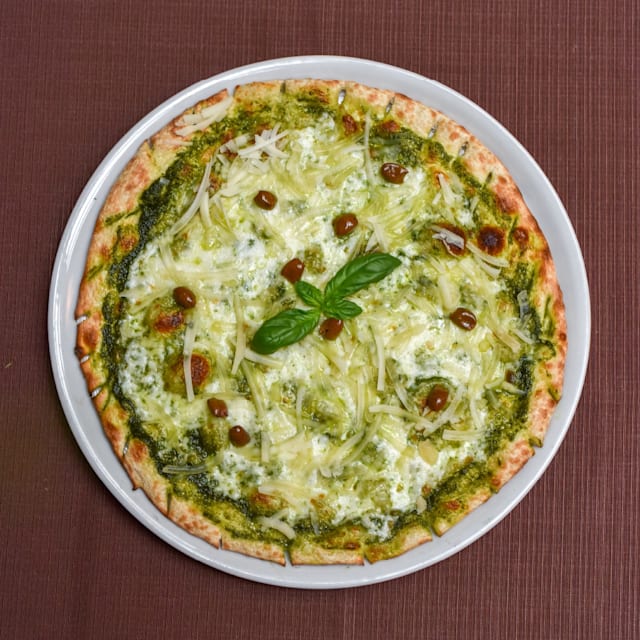 Mozzarella, crema di basilico, olive taggiasche, grana grattuggiato