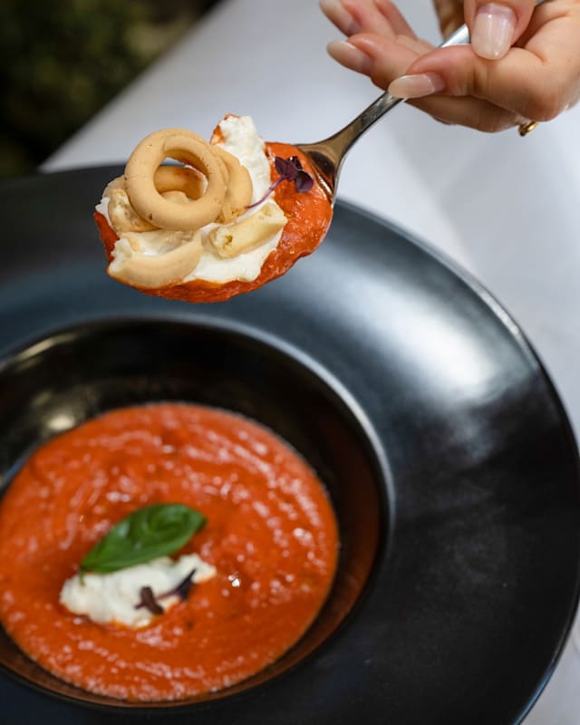 Pomodoro, bufala a freddo, pomodoro fresco, olio al basilico