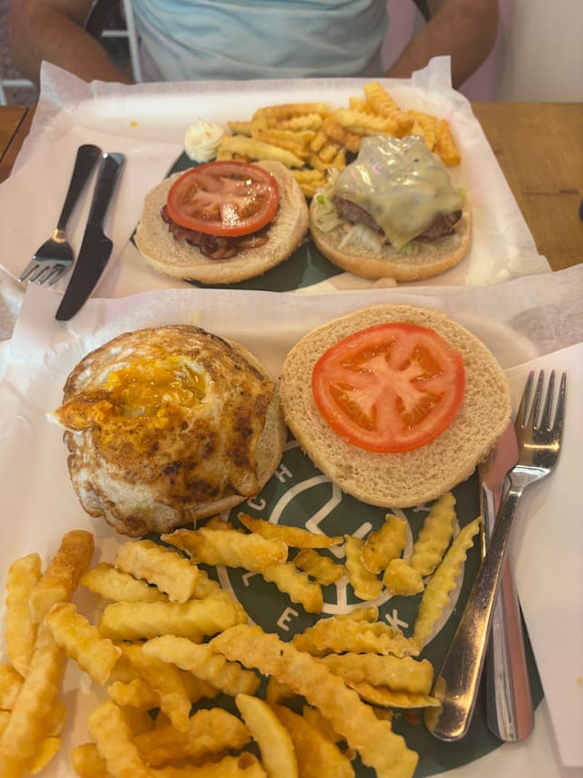 10/10The owner here is very accommodating and provides great service. The burgers are very large. I was very glad I hadn't ordered the one with the two patties. The fries were some of the best I've ever had. I'm not usually get that keen on fries but these were so good. They were chunky and had the skin on them. The place is very casual. It's more like a cafe than a restaurant but the food is great and the service couldn't be better. Highly recommend.
