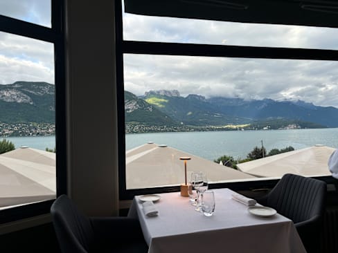 9/10Incredible location and an incredible view. We speak no French and the waiting staff went the extra mile to communicate with us in English and were very welcoming. We were very thankful for their efforts. The food was lovely and the price was appropriate for the quality. It was quite quiet and almost a little snooty in atmosphere. I felt like I had to whisper to my partner or people would look at us for laughing. We enjoyed ourselves and absolutely loved Annecy in general.