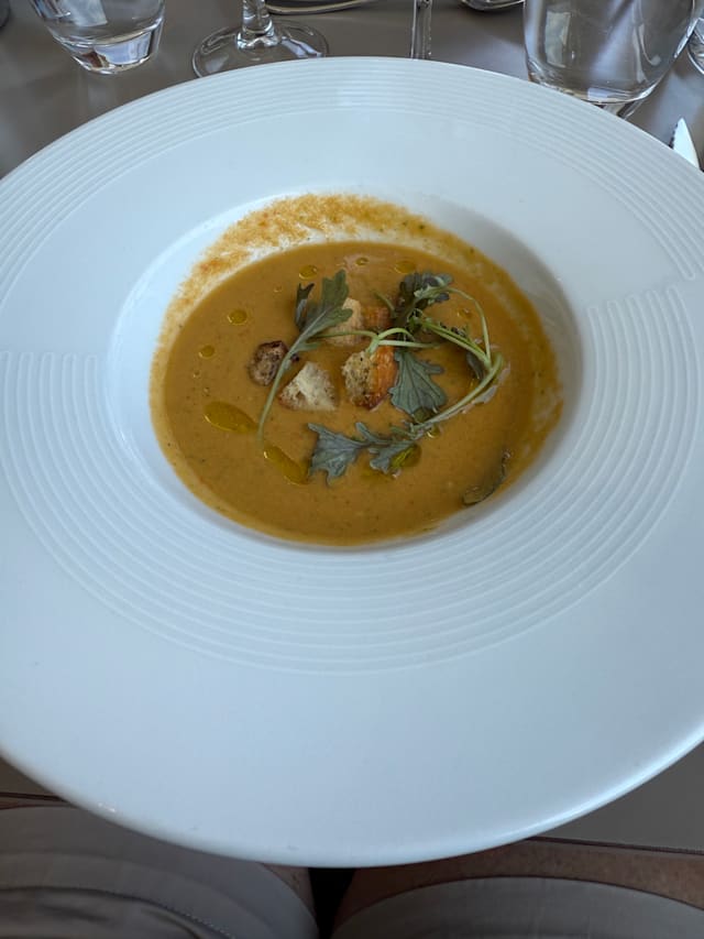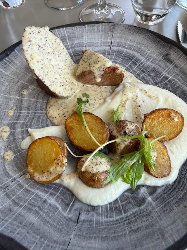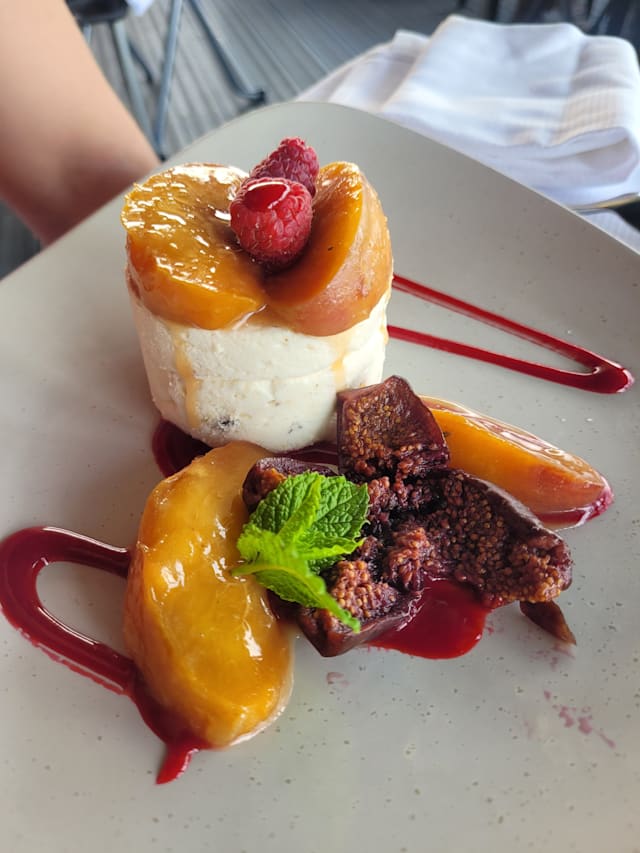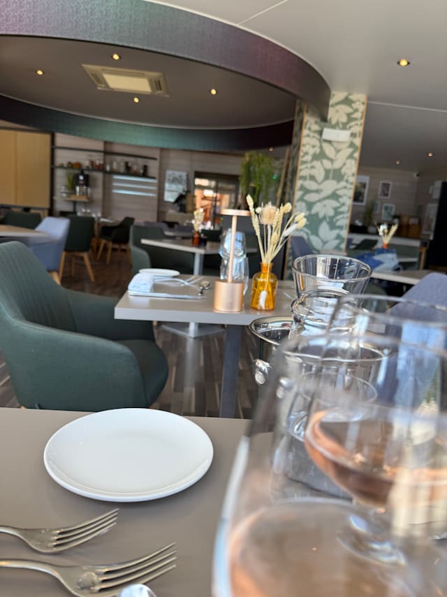 8/10The restaurant has a beautiful view! We started with a gin and tonic which was lovely, before moving to a bottle of Savoir white with dinner which was also delicious. I had the Ravioli whilst my husband had the crayfish for entrees - they were both amazing, very beautifully presented and delicious. The bread was also fresh and tasty. I had the duckling for mains and my husband had the guinea fowl. The guinea fowl was crispy and tender, I wish I had ordered it myself! The duck was chewy, hard to cut through and not very nice. The aubergine and polenta that accompanied the duckling was lovely.