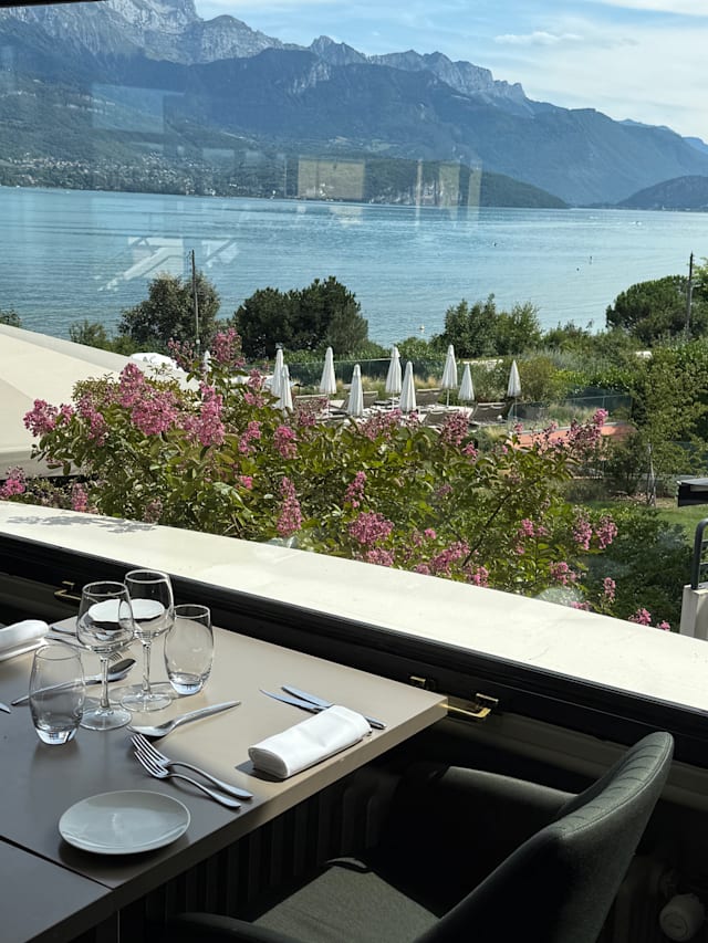 9.5/10The food was divine. Every course was perfectly cooked with really subtle flavours. The view of the lake is also really special. My only complaint was the slow service - took 30 minutes to get water to the table (on a really really hot day!) and the coffee arrived way after the cafe gourmand (desserts) that we asked for together. The waiters, however, were very helpful and nice, even though our French was pretty difficult to understand!