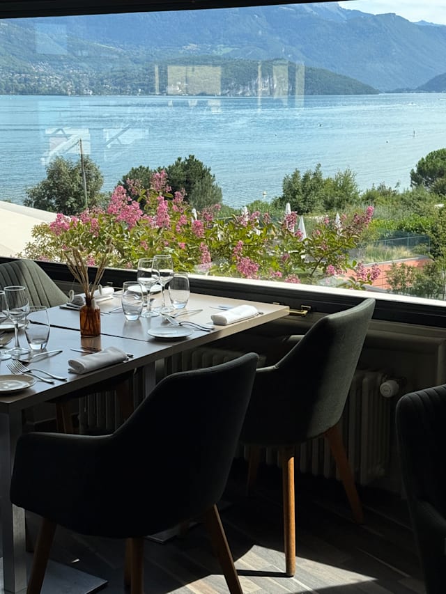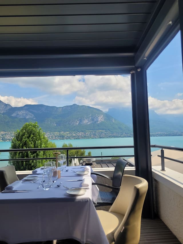 9/10Restaurant was really perfect. We will return soon. Meals very tasty. Correct price and wonderful view on the lake of Annecy and the mountains.