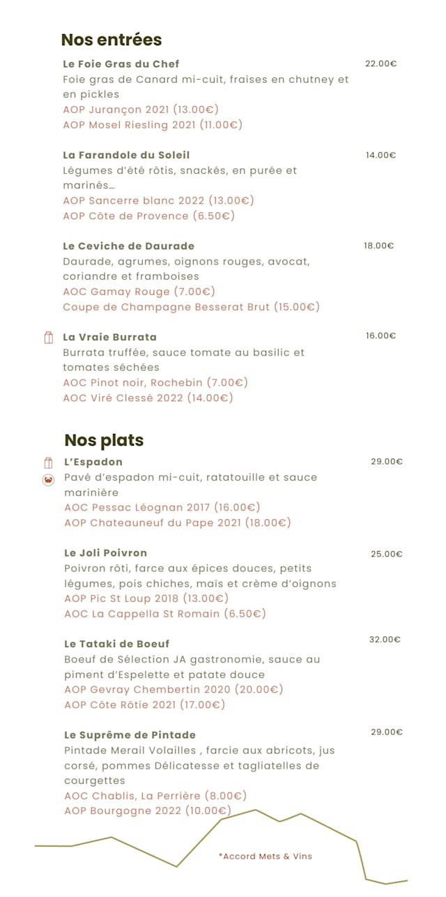 9.5/10We ordered The Menu du Marche for lunch. Great value and of excellent value. Highly recommended.