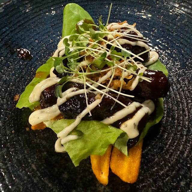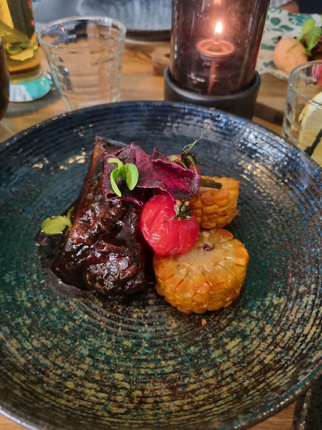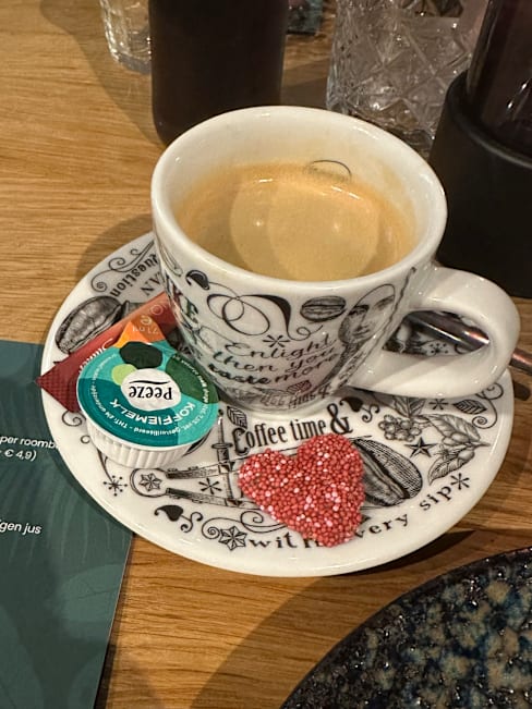 7/10The establishment is nice and decent. The servings are good for one person but this is the problem because they have a concept. The concept is to casual drink and talk with friends while you share the food but the servings are ‘culinair’ and the only thing to share is a huge bread that can be pulled apart by you and your friends. This does nor match the establishment to be honest. My advice is to drop this ‘act’ and pick up a little more healthy side dish options. The selfservice wine bar I like very much!
