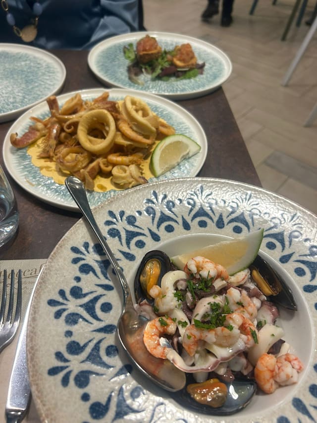 8/10Portions were huge. 3 courses is impossible to eat. crab fettucine was good. squid was slightly over but still good. seafood moussaka was really inconsistent. staff was very attentive.