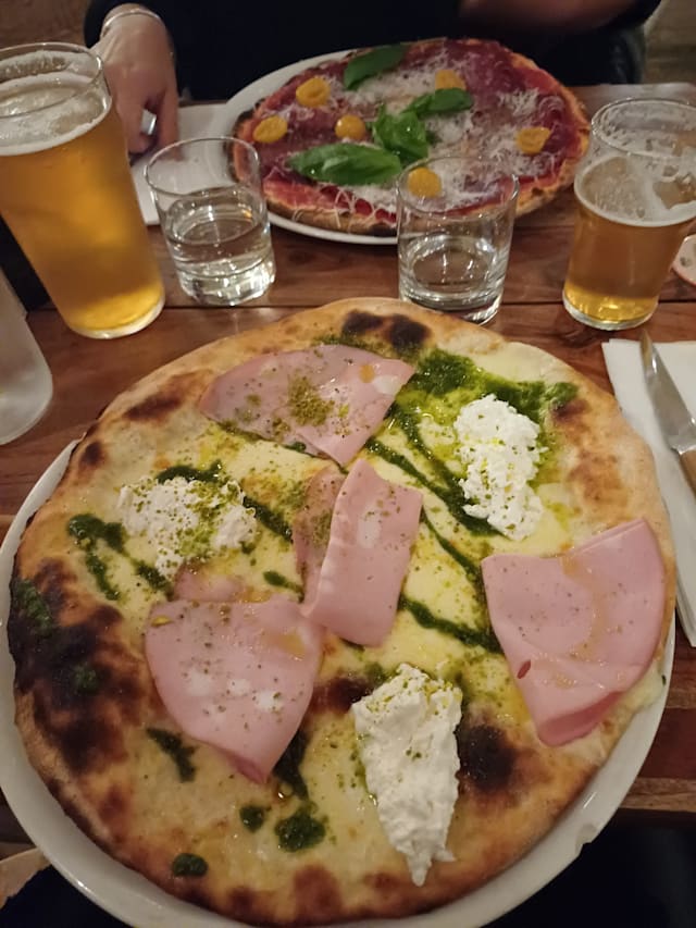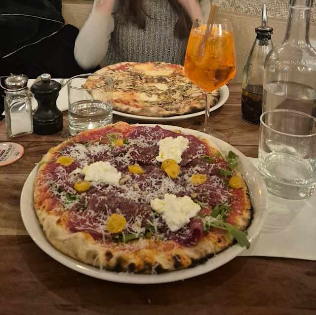 6.5/10The pizza was flavourful but delivered cold. The pasta lacked flavour and was far too Al denté, not cooked enough. The Spritz’s were very good. The service was very slow and we had to ask for things like bread and Parmassan.