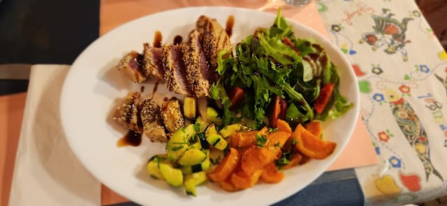 10/10Wonderful local restaurant with outstanding food and service. Every course was beautifully cooked and presented. The portions were really generous and the prices extremely reasonable. The two starters- garlic mushrooms and baked goats cheese were delicious and the two mains- seared tuna and octopus were equally good. The home made chocolate cake we had for dessert was top notch too. A fantastic meal. Highly recommended.