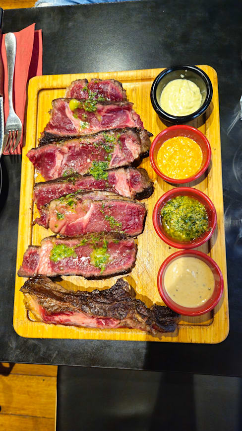 4.5/10For a recommended restaurant on tripadvisor, this was a disappointment. The steak was not the quality I expected, and the waiter wore a worn-out jersey and it did not look like he worked there. We were given a table, ordered food and drinks, and then they decided to put down a tablecloth, so we had to move all the dining to get ours. The toilet was downstairs, and we had to go past a guy working on some things in a corner, way down the corridor. The sink was broken and it was quite dirty. I'm glad we had a coupon for half off the food, because it would not be worth it to pay full price.
