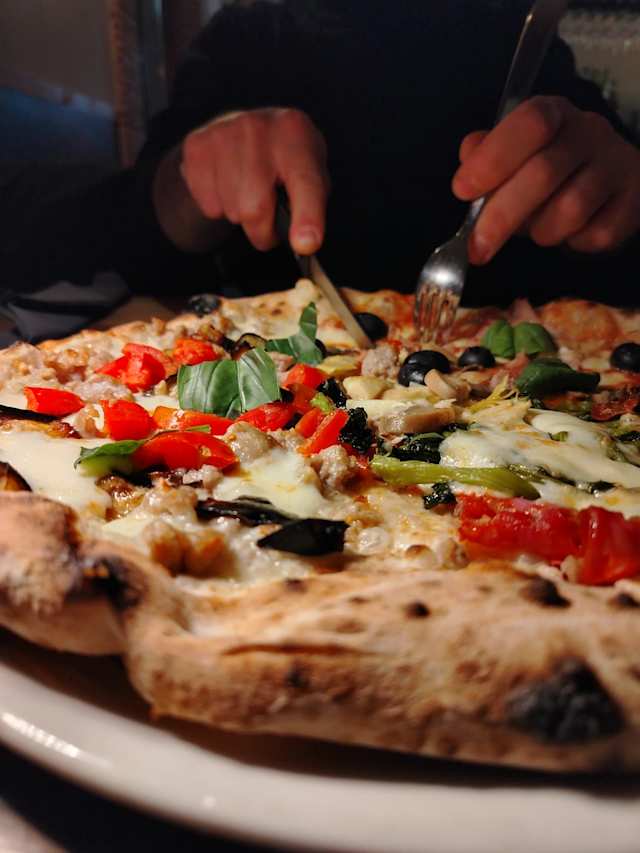 - Fiordilatte, pomodoro, provola, melanzane a funghetto e salsiccia