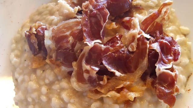 - Risotto mantecato con salsiccia di qualità, caprino fresco e profumo di rosmarino
