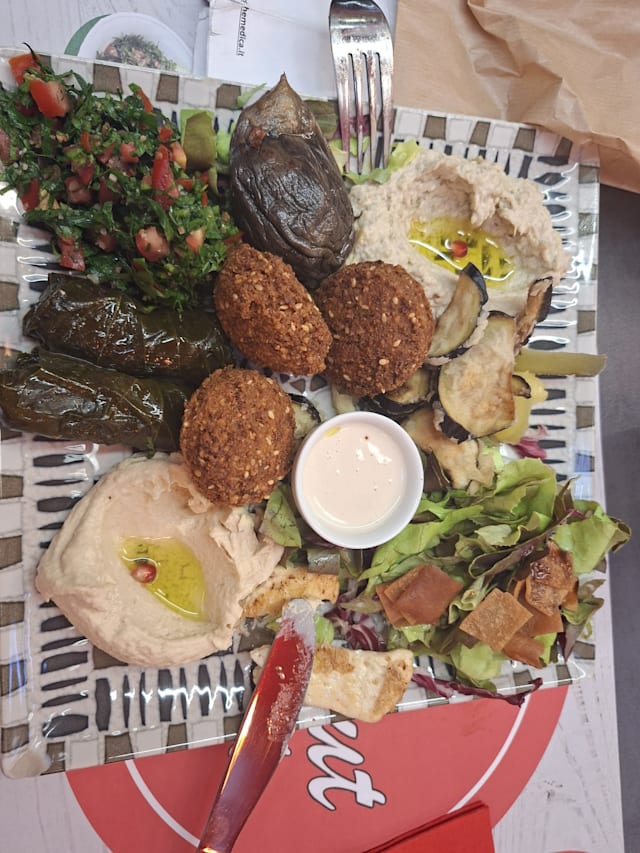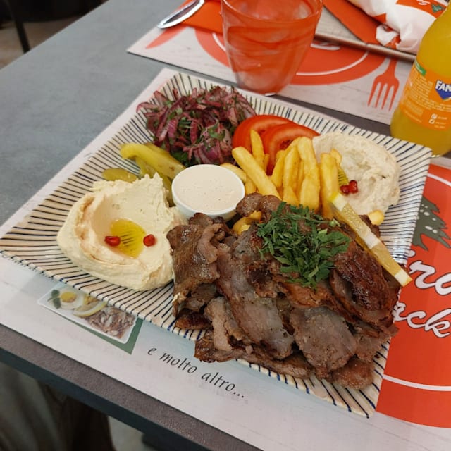 7/10We where 2 people of Sweden to try their meals, it was 2 falaffelplates and one taboulesalad with coca-cola and sprite. The food tasted good and we got -50% off the price there with the app The Fork. The restaurant is behind the central train station.