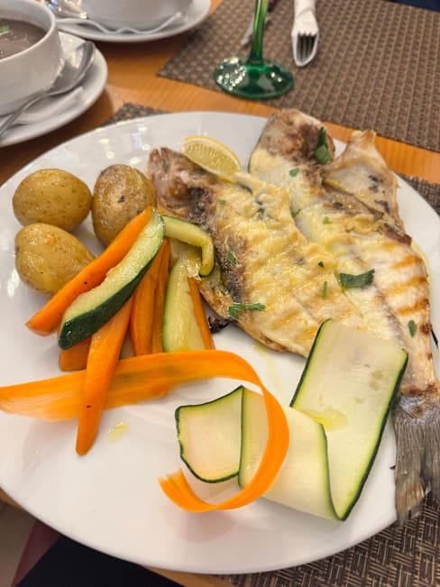 9/10Very nice dinner. We shared some grilled sardines which were very tasty. Everyone enjoyed their meals