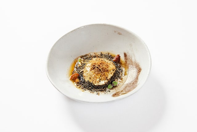 Tarte de cebola, esparregado de espinafre e amêndoa e molho trufado (2023)