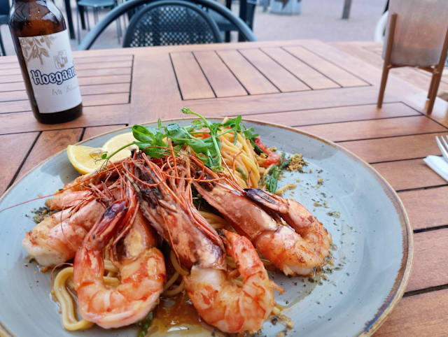 7.5/10Food was nice enough but for €48 for surf and turf I expected a nicer cut of steak and more than 2 king prawns. The side vegetables were frozen mix and that should be fresh. The menu is a QR code that you have to scan and felt like it was a bit low budget and should have had a paper menu.