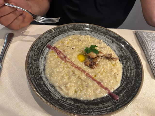 10/10Everything was exceptional - the service, ambience, and especially the food. We started with a mousse of cod & potatoes and a pan-fried foie gras, followed by two pasta dishes, one with beef ragu and one with a braised pork and sausage. Everything was simply delicious, including the little amuse bouche soup at the beginning. And prosecco on the house!