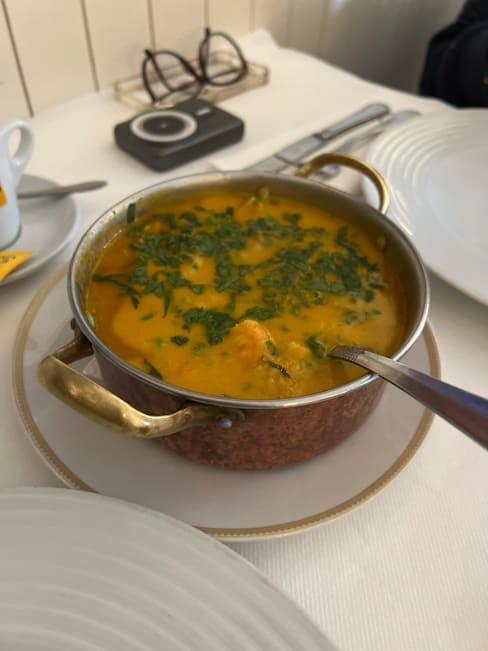 8.5/10This little restaurant is walking distance 12-15 min) from Jerónimos Monastery and has many good choices for lunch, at reasonable prices. My husband and I shared the mixed vegetable salad, the codfish cakes with tomato rice and the prawn and pineapple curry. All very tasty. We also had the white wine from Douro. All delicious and well presented. The only negative was that the service was very slow, both to get our meals and to pay the bill. As long as you’re not in a hurry I’d recommend this place.