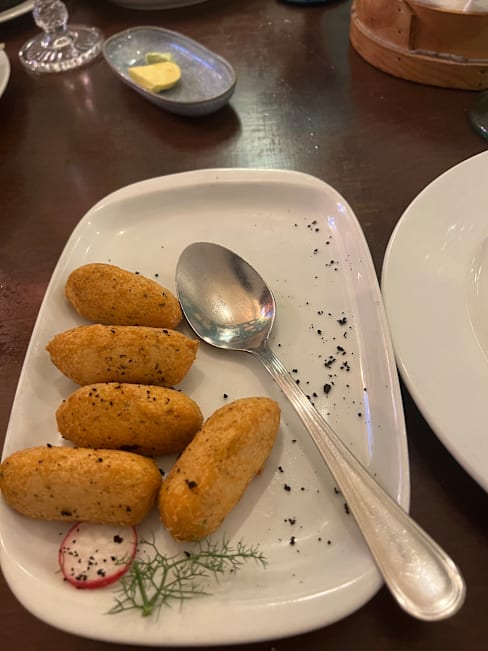 6/10We made a reservation up front using the Fork app. When we arrived we explained this and the staff represented by a rude senior bossy guy told us to go next door to a burger joint (!). A younger guy that actually understood a few words of English let us have a table and then disappeared. A very inexperienced waiter showed up. We ordered food and I wanted a glass of port wine with the cheese starter. After a while the waiter came back with a half full bottle of port an said “port wine finish”. I said well ok, what you have there is a bottle of port, can I have a glass of that one? “No port wine finish” was the answer. I gave up and ordered a beer instead. After that I ordered a glass of red wine, which was served without a chance to taste it first. The food was good, my wife and I agreed. The service was on “Fawlty Towers” level, for people being old enough to understand that reference.
