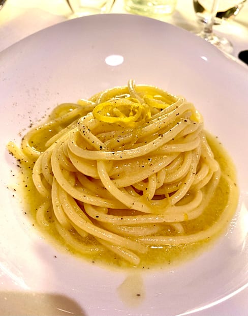 10/10The service was lovely and super friendly but the shining star was the simple elegant perfect spaghetti with anchovies and lemon! We have been traveling in Italy for ten days and had many dinners that were great but that bowl of perfection was magnificent. If you are afraid of even the word anchovies, take a gamble . Here the delicate depth that their flavor gave was perfect and the lemon zest and slightly lemony broth that infused the pasta and was a great reward with bread at the end was terrific. We also loved the local wine, the cod ravioli and the warm chocolate dessert. I will go back, maybe even tonight! Also it is a charming location.