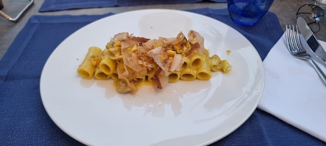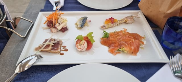 7.5/10The restaurant has a lovely outdoor section on the other side of the street by the canal. The canal is full of very old fisherman boats and a very big crane-boat which is draws a somewhat sad view. Nice service welcome. Food of excellent quality and taste. A teenage staff assistant had no idea how to serve the wine, wanting to uncork the bottle without showing first the label to the customer, unfamiliar with the corkscrew but sweet and smiley.