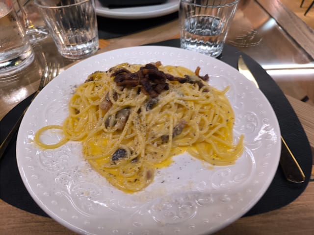 8/10The waiter struggled with English which made the evening a challenge. Although there was a full bar…we could not get a martini or virtually any other mixed drink. There were food ordering issues which eventually were overcome… food came out of the kitchen haphazardly…. With 1/2 getting entrees then a significant wait before the other entrees were served. The food was generally okay. Nothing spectacular. The Sea Bass was definitely fishy. Although very well rated…I imagine there are much better options in Rome.