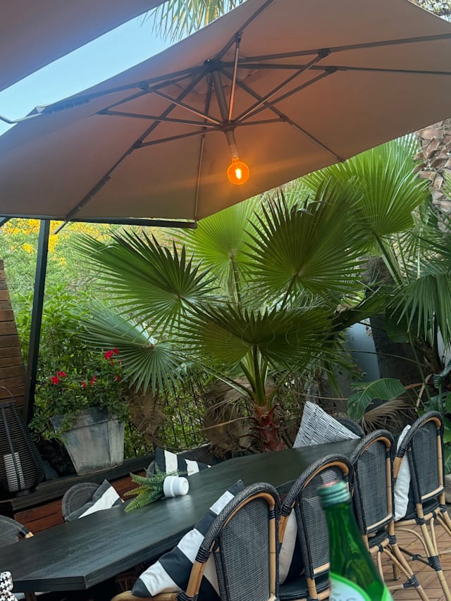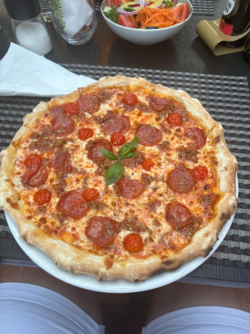 9.5/10Really nice garden with a pleasant DJ playing classics; fresh pizzas, delicious salads and great wine. The garlic bread is a must!