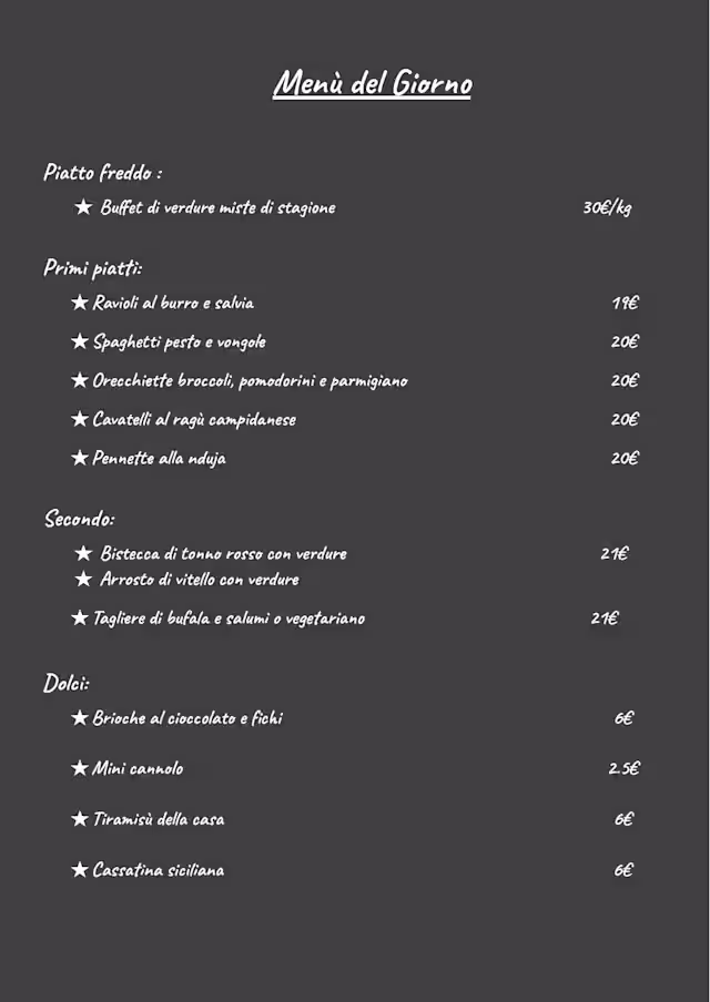 Real Italian food. Small menu offering real flavours from Italy. When it's sunny it is a very nice option for a lunch outside