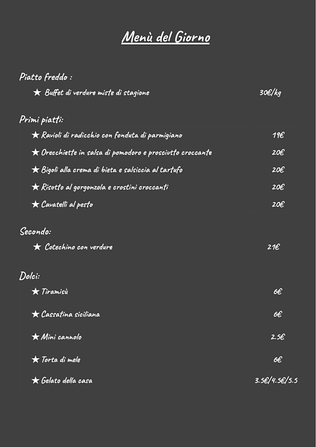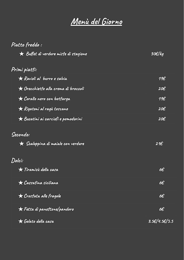 10/10Real Italian food. Small menu offering real flavours from Italy. When it's sunny it is a very nice option for a lunch outside