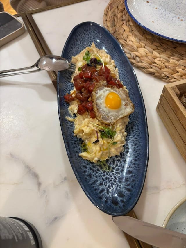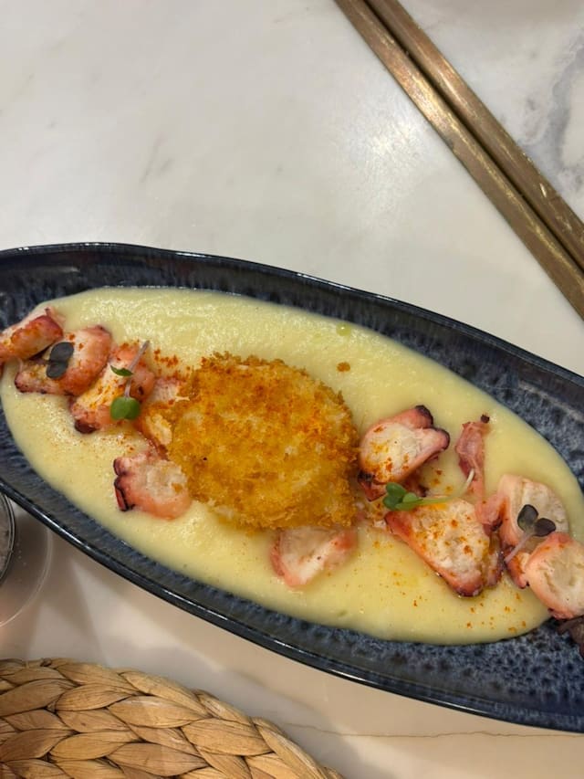 3/10This restaurant-bar, located in a four-star hotel, features a bright interior and comfortable seating. The staff is friendly and offers service in both English and Spanish. We tried the Ensaladilla Rusa con Sardina Ahumada, Fideuá de Oreja y Shitake, Lomo Bajo de Ternera, and Secreto de Cerdo Ibérico. The first two dishes were reasonably flavorful, but the latter two main dishes were simply grilled and salted, with no sauces or accompaniments—not even a hint of garnish. If you know how to cook, you could likely prepare these two dishes yourself, but we waited about 30 minutes for them. Additionally, tonight's experience was not befitting of a mid to high-priced restaurant. We were forced to dine in a very noisy and uninspiring atmosphere due to a UEFA Champions League match being shown on a projection screen in the restaurant—something we were unaware of when making our reservation. Even with the special offer from the fork, we still paid nearly 78 euros, which included a 4-euro serv