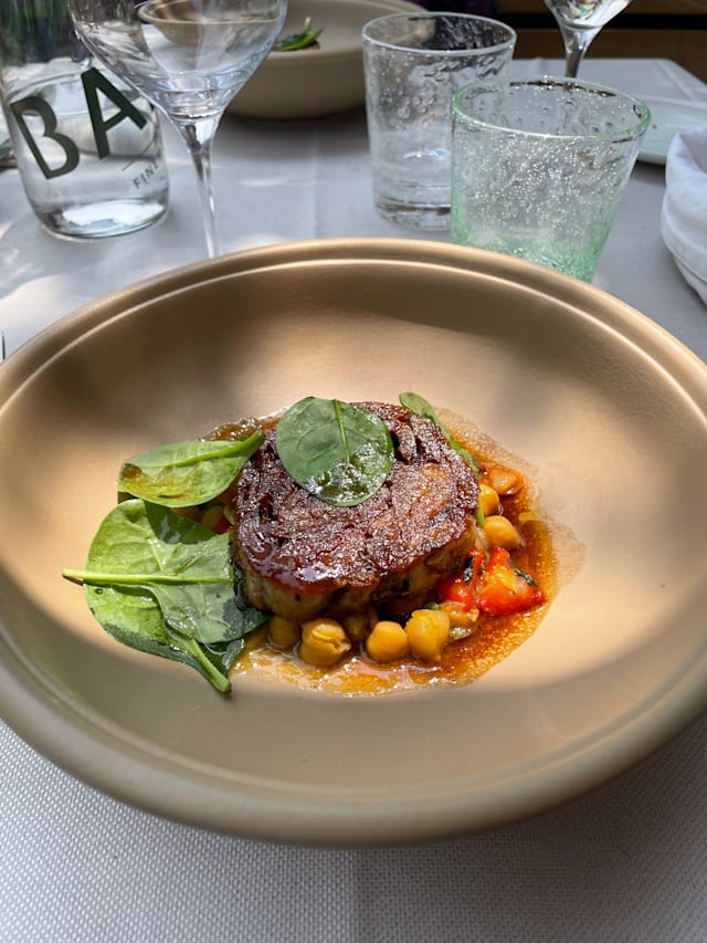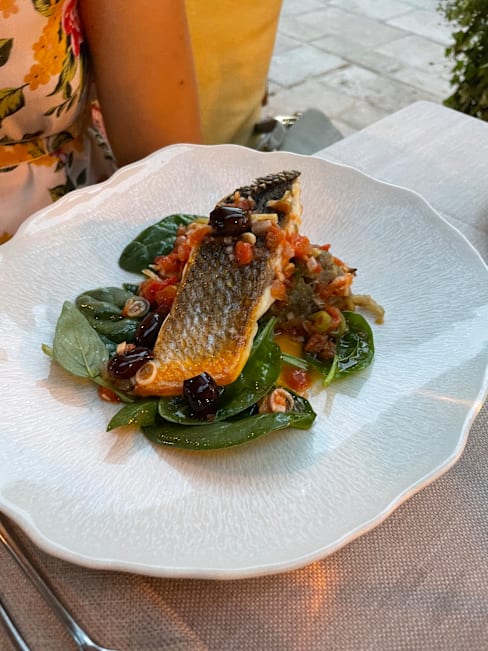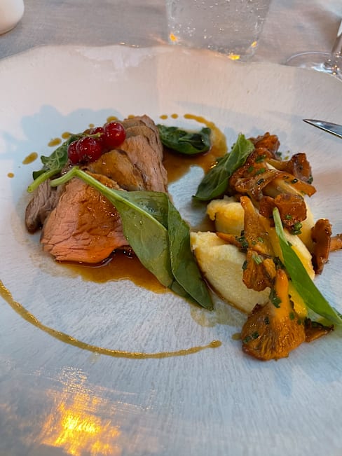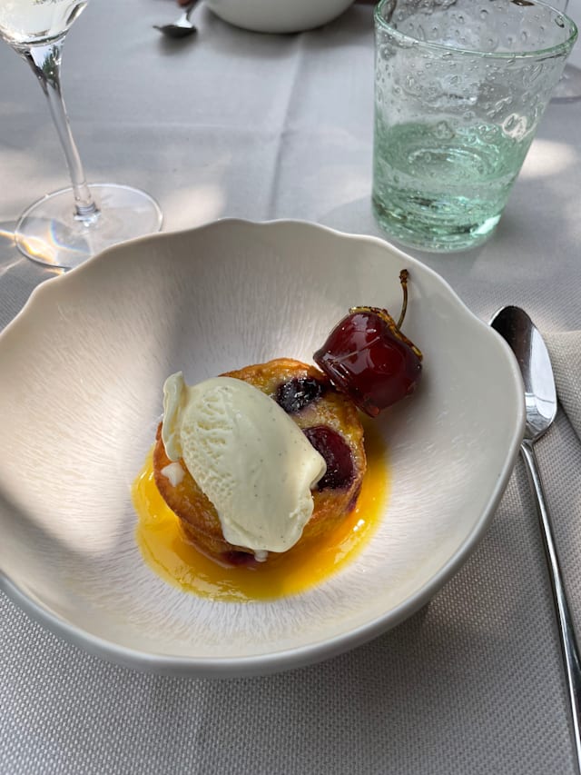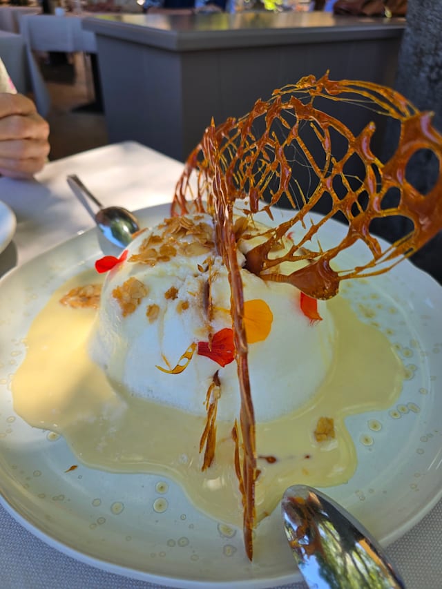 4.5/10Beautiful outdoor venue with picturesque scenery and pleasant decoration. Great attention to the menu presentation and tables - setting the scene for a wonderful evening of dining. Following a delay in ordering the food , we had two delightful tasters of a mini Parmesan biscuit and ham, leek and cheese muffin which were light and flavorful. Then, we were presented a lovely amouse bouche of potato and truffle gazpacho which was perfectly prepared and seasoned - one of the highlights of the meal. This had us very excited for the starter and mains. Our starters were quite mixed. I had the sea bream starter which I thoroughly enjoyed as it was fresh, well balanced and perfectly seasoned. It was very different and unique. My husband had the burrata with spinach leaves and truffle. This was a very disappointing starter. There was no doubt that premium ingredients were used (an €8 premium applied to the set menu). However it was incredibly bland, with burrata sitting on dry spinach leaves with many slices of truffle with a drizzle of oil. Despite the ingredients this dish was hugely disappointing and lacking any cohesion, flair or flavor. Whilst waiting between courses, we noticed hot food delivered from the kitchen was consistently left sitting, for some time, at an outdoor service station before being brought to each table. When our mains arrived, the same situation occurred, resulting in the food being served cold. For mains, we both had the duckling breast with lavender honey and rosemary, and roasted peaches. Both servings were quite disappointing and not consistent, as well as both being lukewarm when served. Neither duck breast was seared properly, nor was the fat rendered. Both were perfectly cooked to the rosé request. The sauce had the hints of honey but no flavour of lavender. The “roasted” peaches on my plate were warm and tender but in no way roasted. My husband’s peaches on his portion were practically raw, and not ripe. The meat was served with some quenelles of a mild sweet potato purée that was very unremarkable, and several raw baby spinach leaves which didn’t complement the flavour profile of the dish. This dish was extremely mediocre and was not accompanied by any side dishes, leaving it feeling incomplete, which is unacceptable at this price point. Service overall was pleasant but felt somewhat unprofessional. With long delays, and great difficulty attracting attention. Shortly thereafter we asked for the bill and had to wait over 35 minutes to pay, as it seems only the manageress is allowed to use the card machine, which was rather strange. In summary this beautiful restaurant is situated in a stunning location and offers great promise, but fails to deliver in almost every way that matters. Despite the premium local ingredients used, there was no care in their preparation or serving. We felt the restaurant was overpriced for the food delivered, and were quite disappointed. Not Michelin guide standard.