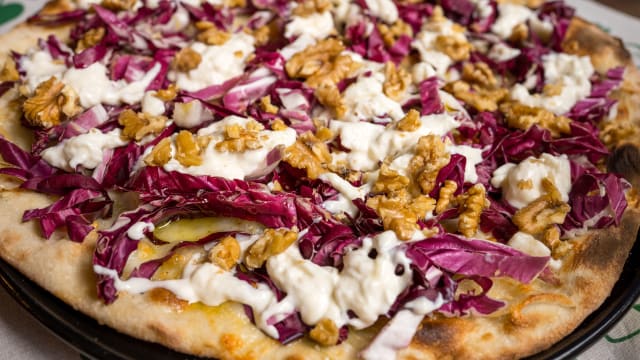 Mozzarella, salsiccia, crema di peperoni, ricotta vaccina e rucola