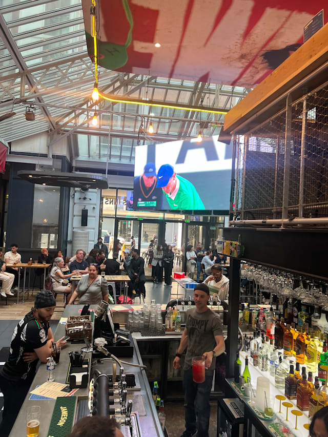9/10We watched the Clasico there. The food was decent, the screens and atmosphere was excellent, with lots of screens and spaces between tables.