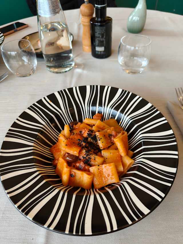 - Calamarata di pasta fresca al ragi di polpo e olive tagliasche