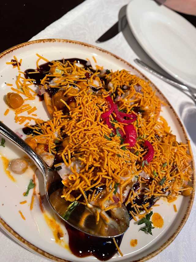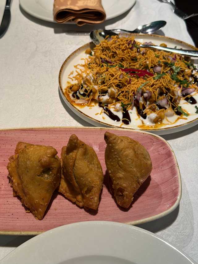 7.5/10Samosa chaat was extremely tamarind forward/sweet. It needed green chutney to balance out the flavors. Samosa itself was heavy on the fried exterior and less so on the filling. I really love chaats so this is heavily influencing the review. Curry dish was solid, but it was a little weird that the naan seemed to come out in pieces of 3 when they were shaped like they were cut in quarters… so did I only get 3/4 of a whole naan? Mango mousse was fantastic!