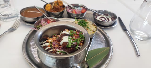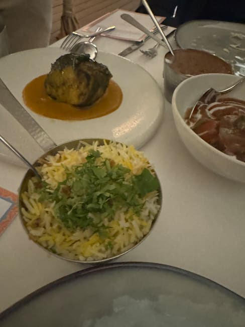 9/10+3The food was delicious, authentic Indian cuisine. The decor is beautiful. My only complaint was the service. I was expecting a much better service from a restaurant of this caliber. They weren’t attentive if we needed more wine or if we had finished our food and the empty plates stayed on the table longer than necessary. They also took very long to serve the main dish.