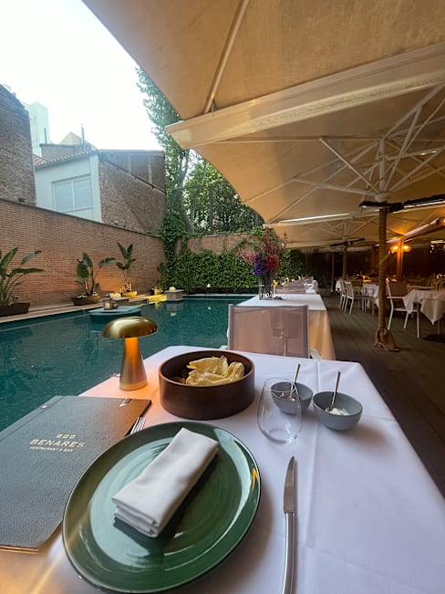 9.5/10First time at Benares. Very nice restaurant located in Almargo barrio in Madrid with creative cocktails, excellent food and nice ambience. Service was attentive, although a bit off once the restaurant filled up. Highly recommend.