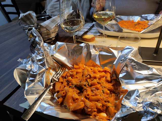 - I macheroncini al torchio con speck rucola, cipolla, pomodoro e panna