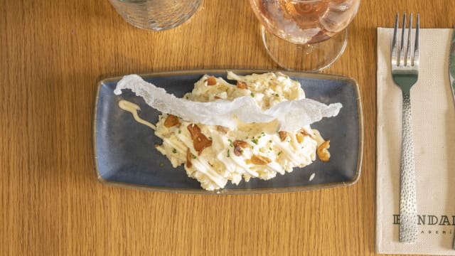 con base de beurre blanc de puerros y rellenas de picadillo ibérico