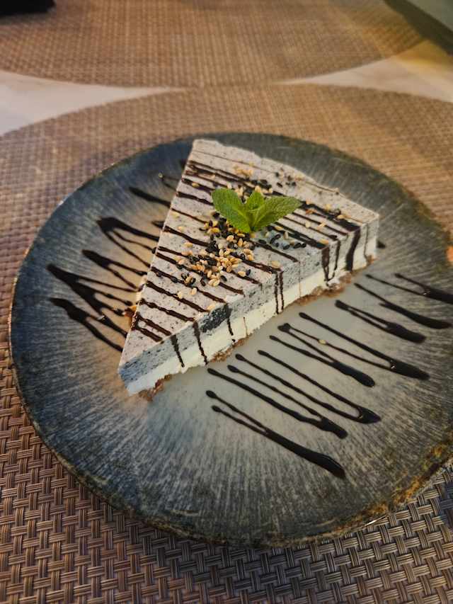 - Cubos de salmão e peixe branco marinados em molho especial da casa, com cebola roxa, cebolinho e manga, resultando num prato leve, fresco e com um toque tropical.
